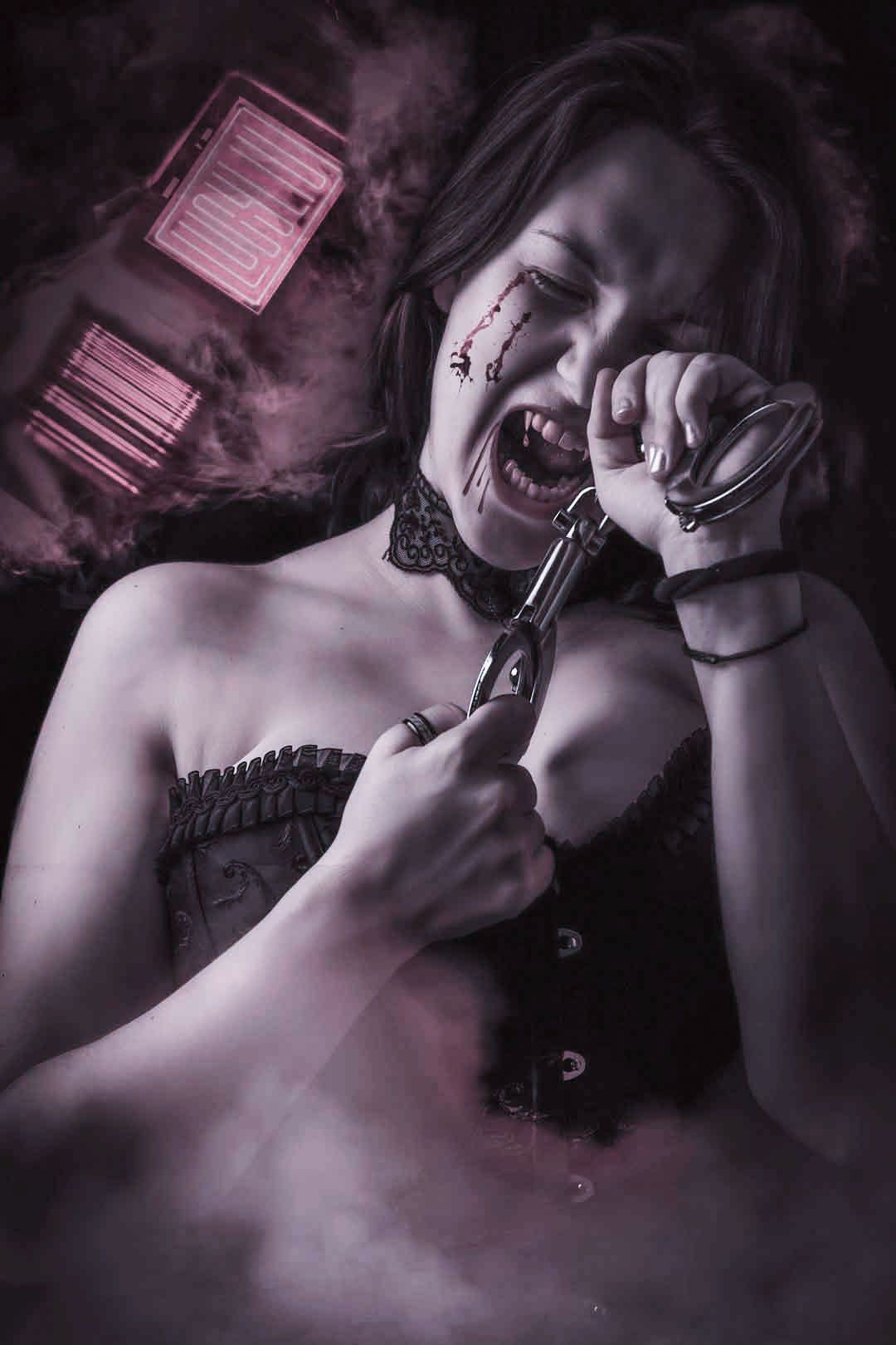 Gothic dreams, captured in the studio's shadows.